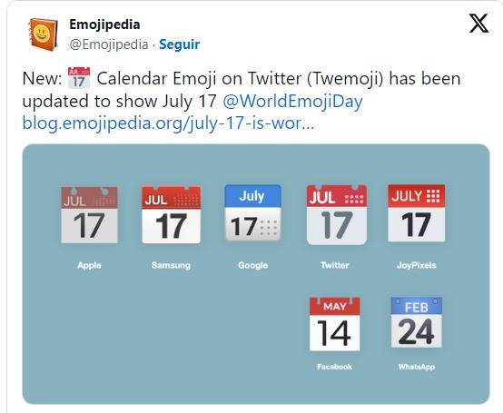 Jeremy Burge, fundador del sitio Emojipedia y experto en emojis, fue quien en 2014 instauró el 17 de julio como el Día Mundial del Emoji. Según Burge, eligió esta fecha porque es la que aparece en la gran mayoría de los iconos de calendarios.