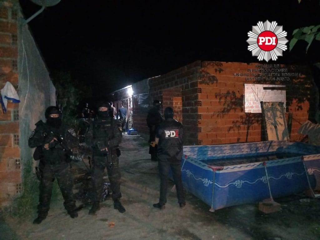 La Policía de Investigaciones (PDI), dependiente del Ministerio de Justicia y Seguridad, realizó el pasado jueves tres allanamientos donde detuvo a dos personas, una mujer identificada como A. M. R. de 35 años, y un hombre de nombre M. A. R. de 74 años, por tenencia, fraccionamiento, distribución y comercialización de estupefacientes.