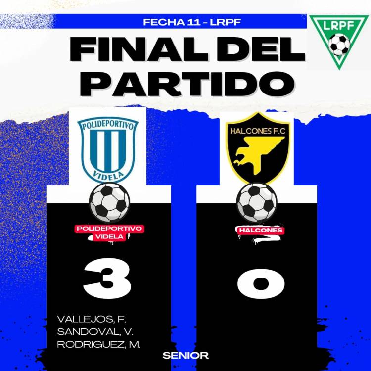 Con Goles de-Vallejos F, Sandoval V y Rodríguez M.- la categoría Senior del Polideportivo Videla se impuso ante Halcones F.C